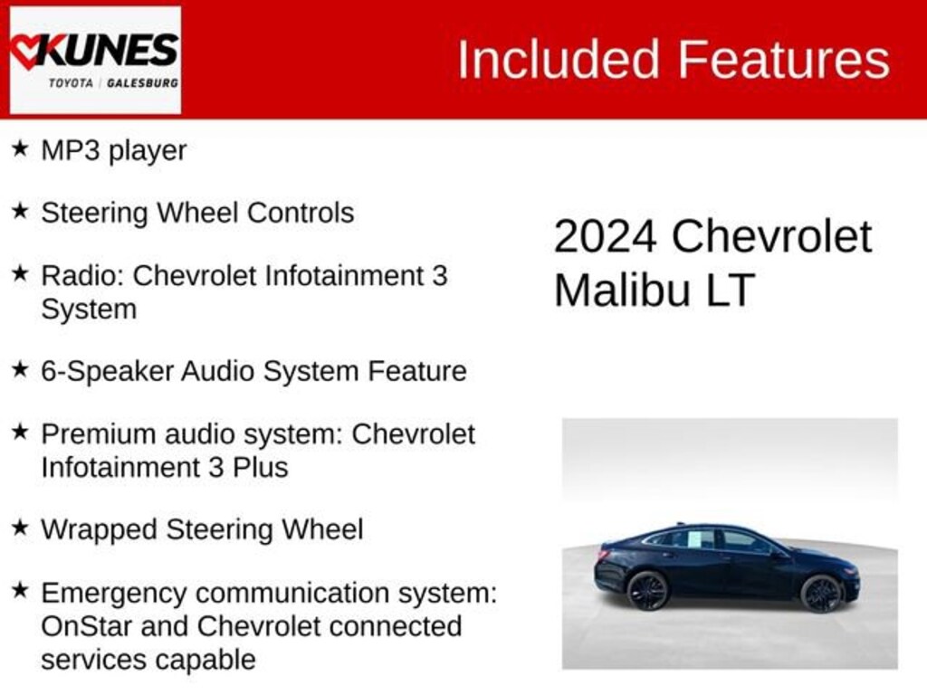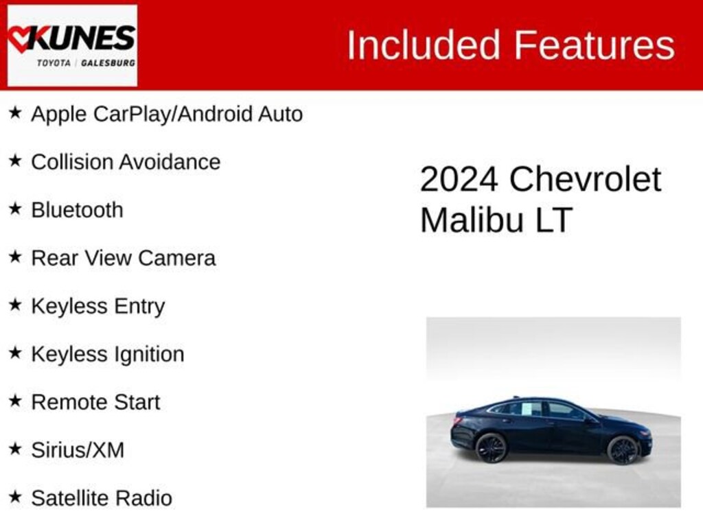 2024 Chevrolet Malibu LT 1LT Mosaic Black Metallic Recent Arrival! Clean CARFAX. 1LT Apple CarPlay/Android Auto, Collision Avoidance, Bluetooth, Rear View Camera, Keyless Entry, Keyless Ignition, Remote Start, Sirius/XM, Satellite Radio, MP3 player, Steering Wheel Controls, Jet Black Cloth, 6-Speaker Audio System Feature, 6-Way Manual Front Passenger Seat Adjuster, Blacked-Out Grille w/Dark Chrome Surround, Compass, Delay-off headlights, Driver door bin, Emergency communication system: OnStar and Chevrolet connected services capable, Front & Rear Black Bowties, Front Bucket Seats, Front Center Armrest, Front reading lights, Heated Driver & Front Passenger Seats, Illuminated entry, Leather-Wrapped Shift Knob, LED Tail Lamps, Nameplate Badge In Black, Outside temperature display, Overhead console, Passenger door bin, Passenger vanity mirror, Premium audio system: Chevrolet Infotainment 3 Plus, Premium Cloth Seat Trim, Radio: Chevrolet Infotainment 3 System, Rear Cross Traffic Alert, Rear reading lights, Rear seat center armrest, Split folding rear seat, Tachometer, Trip computer, Variably intermittent wipers, Voltmeter, Wrapped Steering Wheel.