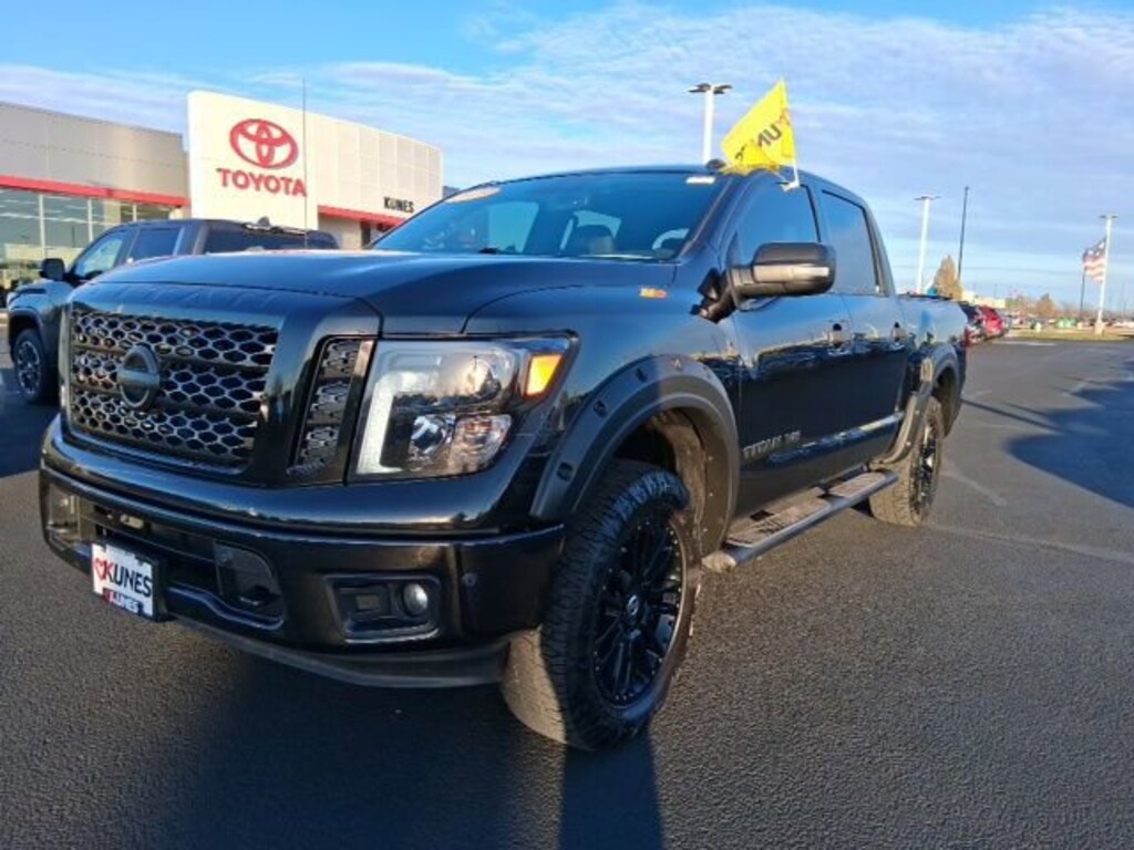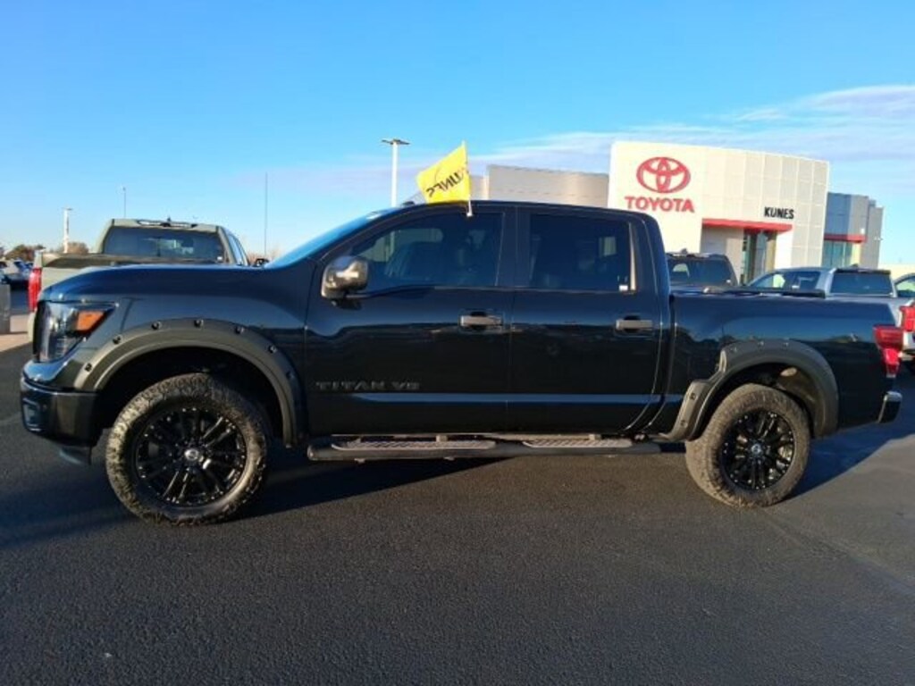 2019 Nissan Titan SV Magnetic Black Metallic Recent Arrival! CARFAX One-Owner. Apple CarPlay/Android Auto, Bluetooth, Rear View Camera, Keyless Entry, Keyless Ignition, Sirius/XM, Satellite Radio, MP3 player, Running Boards, Tow Package, Steering Wheel Controls, 4WD, Bumpers: chrome, Convex Spotter Mirror, Heated Front Captain's Chairs, Leather Seat Trim, Nissan Navigation System, Painted Rear Bumper, Rain Sensing Wipers, Speed-Sensitive Wipers, Universal Garage Door Opener, Wheels: 18" x 8" Silver Painted Alloy, Wheels: 20" Accessory.