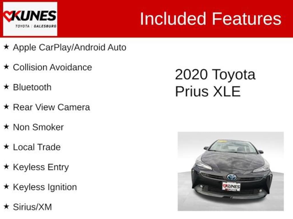 2020 Toyota Prius XLE AWD-e Midnight Black Metallic CARFAX One-Owner. Apple CarPlay/Android Auto, Collision Avoidance, Bluetooth, Rear View Camera, Non Smoker, Local Trade, Keyless Entry, Keyless Ignition, Sirius/XM, Satellite Radio, Steering Wheel Controls, Advanced Safety Features, 1.8L 4-Cylinder DOHC 16V VVT-i.